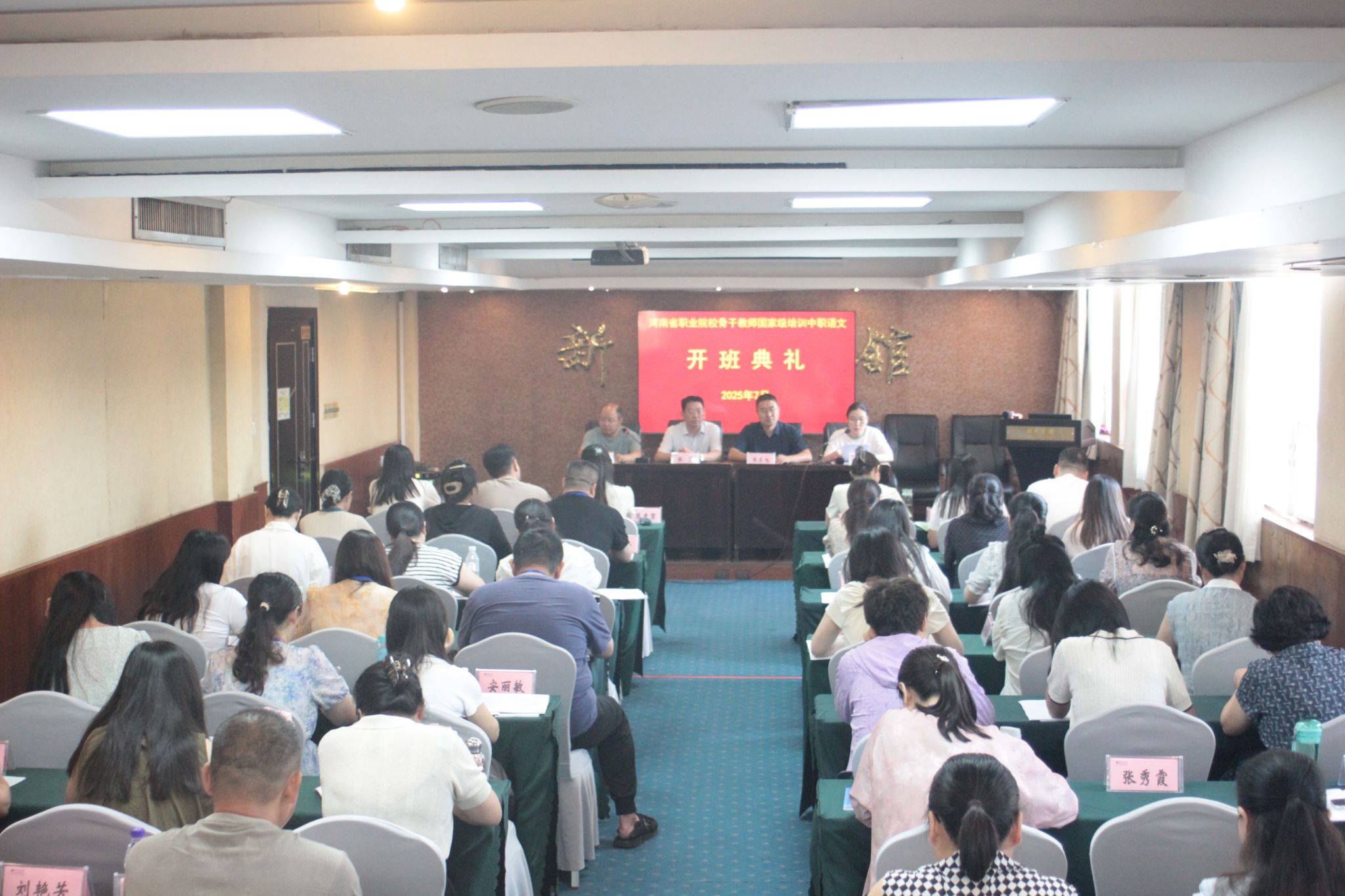 7月26日,河南省2025年职业院校教师素质提高计划国家级培训中职语文培训班在新乡宾馆举行开班典礼。继续教育学院院长、教育培训中心主任张翼、文法学院院长张东旭、副院长王振军,以及来自全省中等职业学校的50名语文教师和班主任参加会议。开班典礼由文法学院副院长王振军主持。