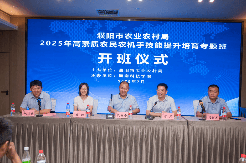 7月26日上午,濮阳市农业农村局2025年高素质农民农机手技能提升培育专题班开班典礼隆重举行。濮阳市农业农村局党组成员、副局长孔祥会,科教科科长路旭,农机科科长周利龙,河南科技学院继续教育学院院长、教育培训中心主任张翼,教育培训中心副主任姚建国,以及50名参训学员共同参加了此次开班典礼。开班典礼由姚建国主持。